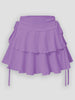 solid color mini skirt featuring high waist, elastic waistband, lace-up decoration, slim fit, A-line silhouette, and casual style. Perfect for summer outdoor fashion with versatile wear and empire waistline.