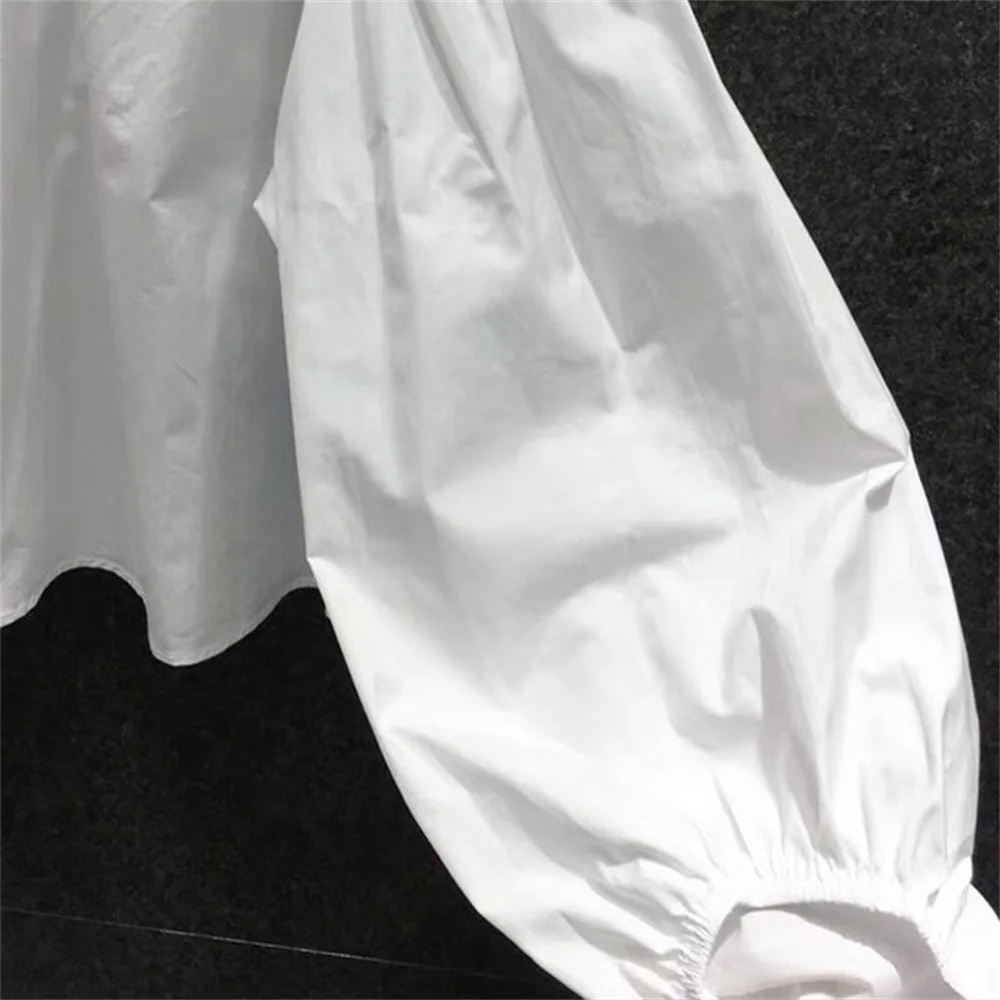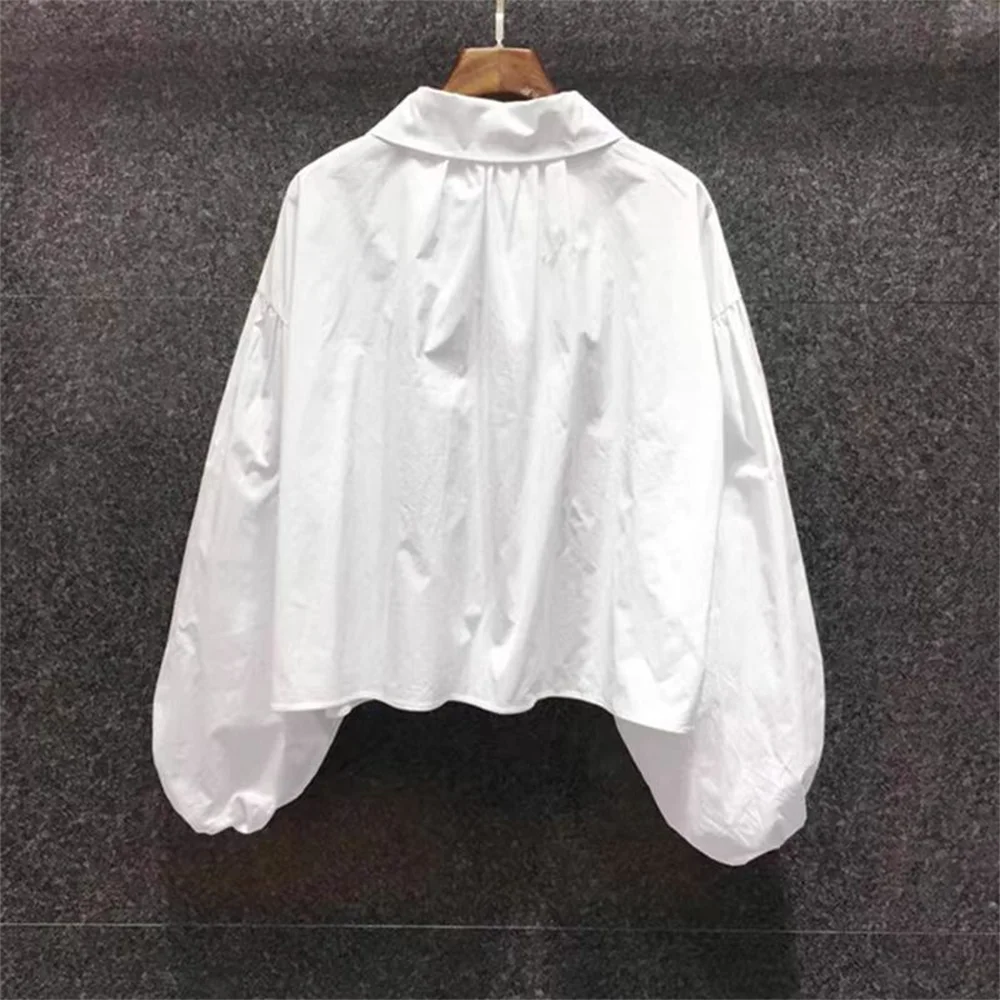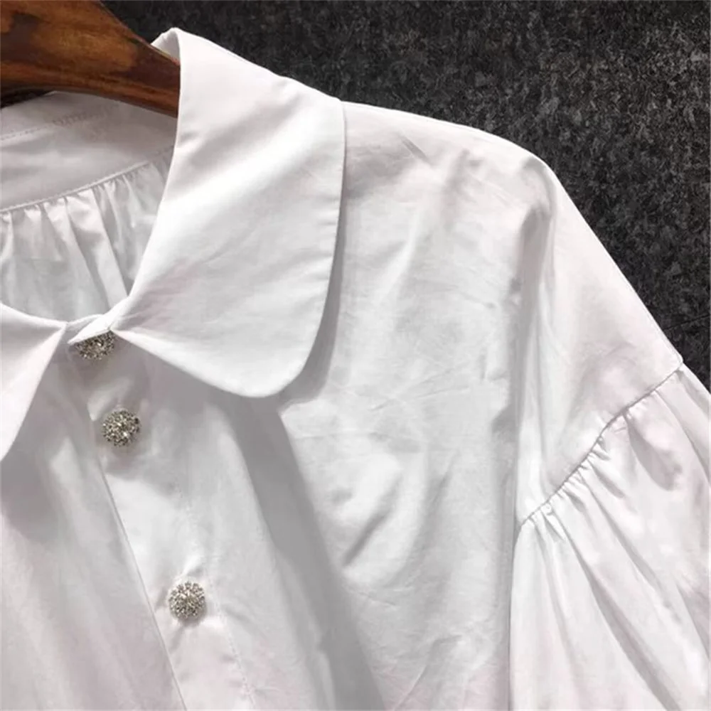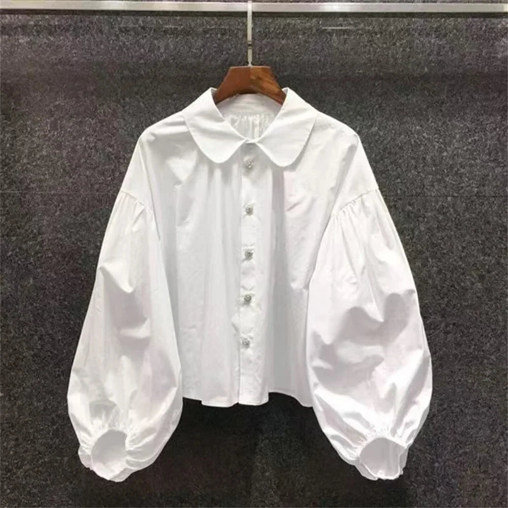 Vintage Peter Pan Collar Blouse - A women's spring 2025 Korean fashion white shirt featuring puff sleeves, Peter Pan collar, vintage styling, and lightweight construction (0.22kg) perfect for ladies' casual or dressy tops.