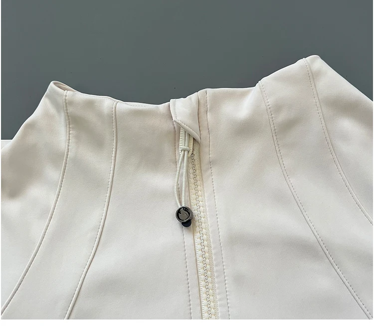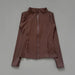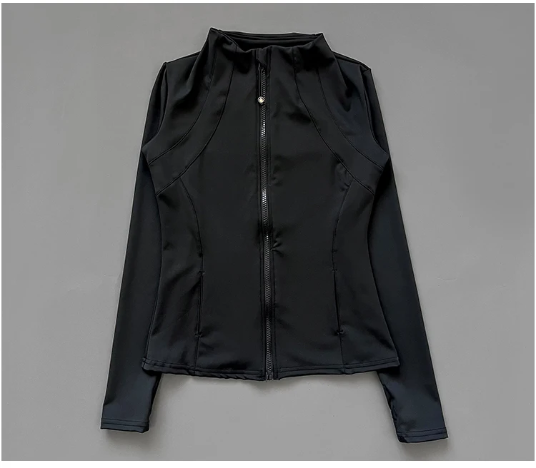 Athletic Running Jacket - A slim-fit women's activewear jacket with quick-drying dryfit fabric, full zipper closure, thumb holes for secure fit, designed for yoga, training, and fitness activities with moisture-wicking performance.