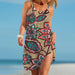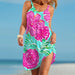 Spaghetti-strap bow-neck slip dress in floral print. Loose A-line silhouette ā breezy and effortless for beach days, holidays, and bohemian casual wear. Sizes Sā5XL.