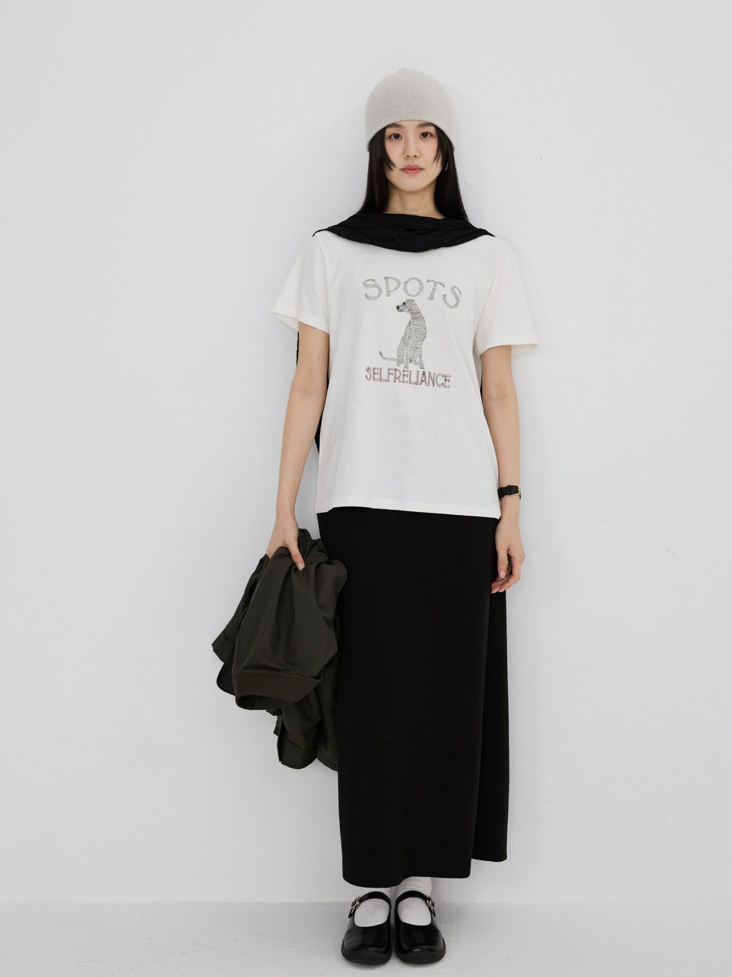 Fun Dog, Cute Cartoon Embroidered Skinny Short Sleeve T-Shirt