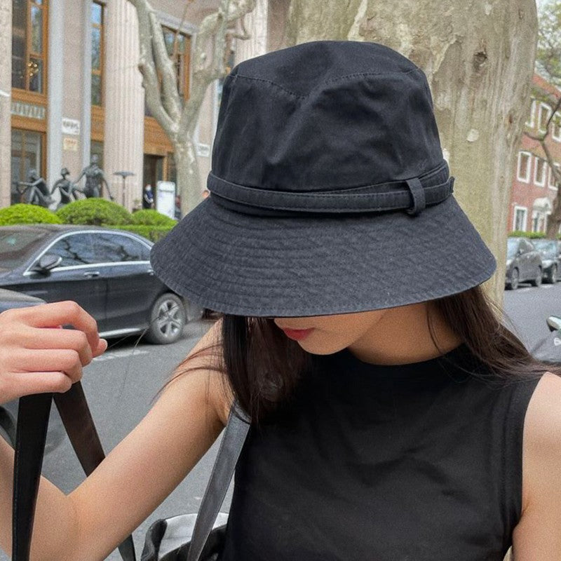 Japanese UV Sun Protection Bucket Hat - A women's summer beach hat featuring big wide eaves for UV protection, adjustable ponytail-friendly design, bucket hat style, travel-ready construction, and elegant temperament styling perfect for holiday and outdoor activities.