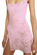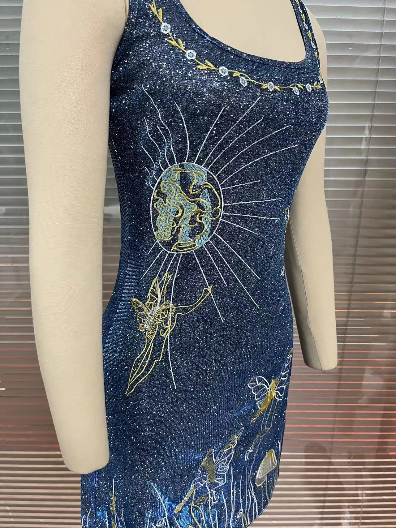 A bold and eye-catching sleeveless bodycon mini dress featuring vibrant 3D printed patterns with a stylish side slit. Perfect for summer parties and club nights.
