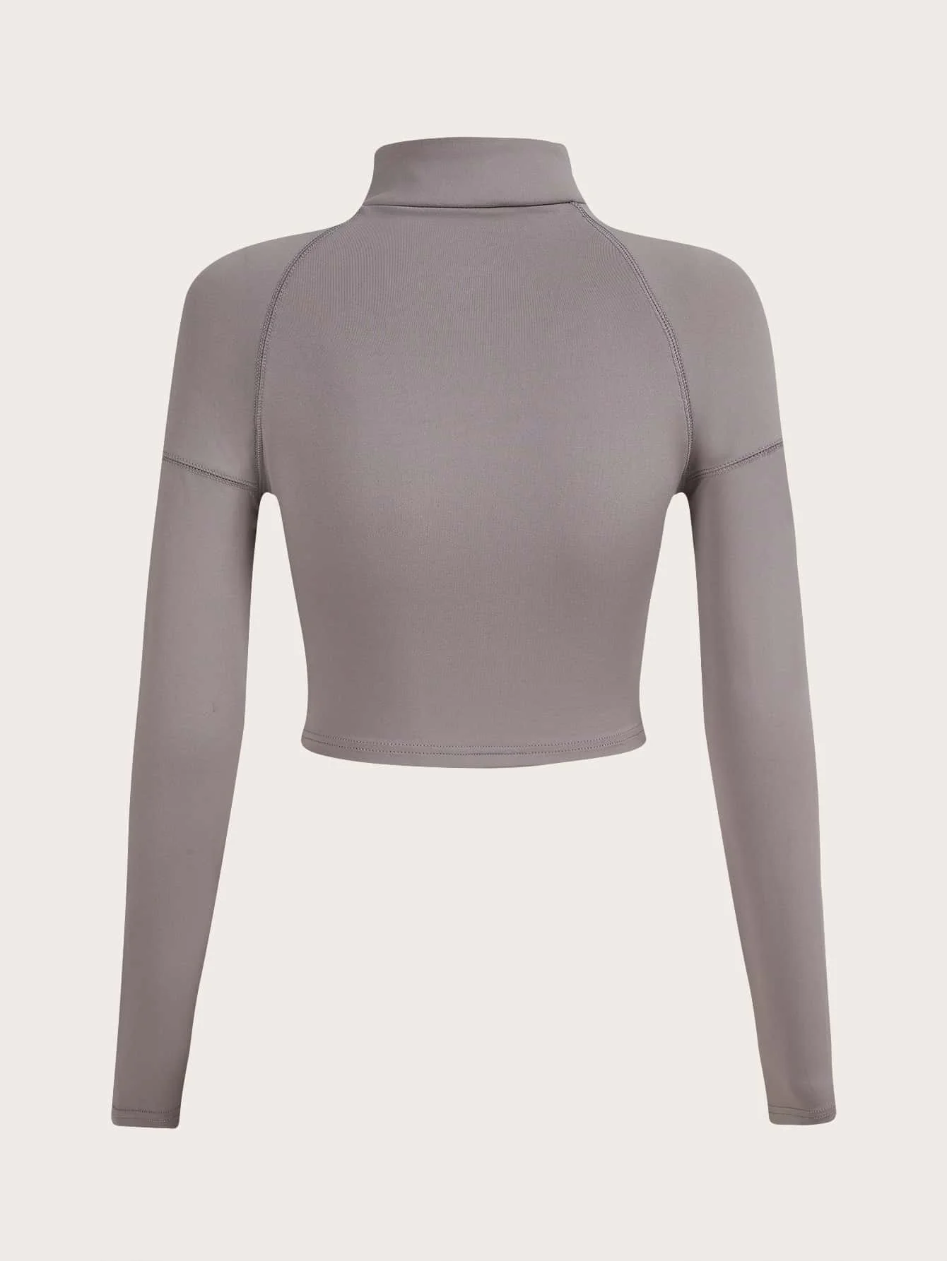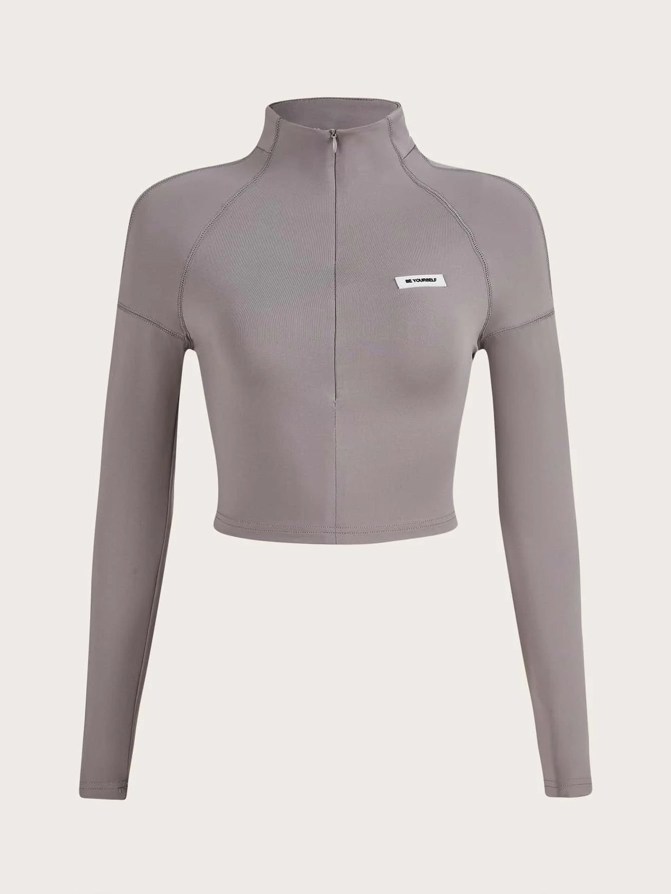 A fashionable women's slim-fit long sleeve top with European and American sports style. Made from comfortable jersey knit polyester-spandex blend with zipper details, perfect for casual spring and autumn wear.
